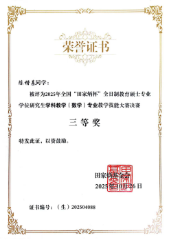 理学院在2025年全国“田家炳杯”学科教学(数学)教育硕士教学技能大赛中斩获佳绩