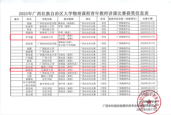 理学院教师在2025年广西高校大学物理课程青年教师讲课比赛中取得佳绩