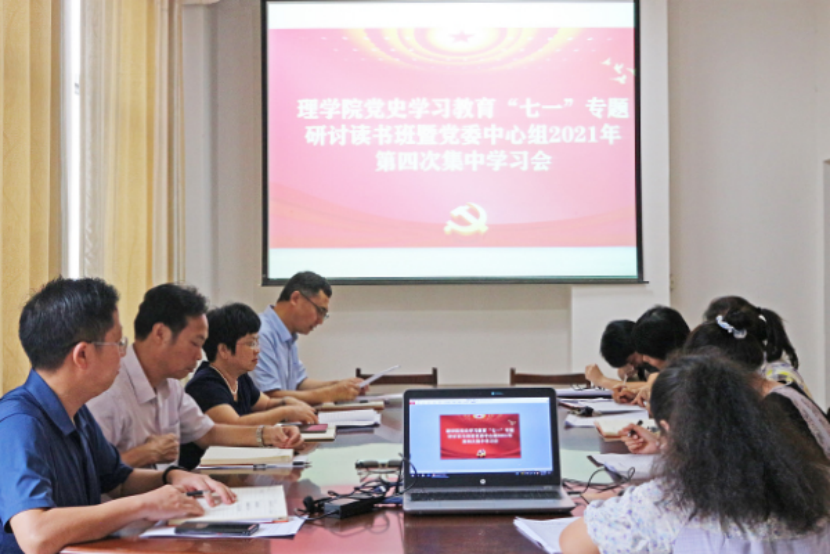 2021年7月7日下午,理学院在1C-338召开党史学习教育“七一”专题研讨学习读书班暨学院党委理论学习中心组2021年第四次集中学习会议,学院全体党委委员和党支部书记参加会议。