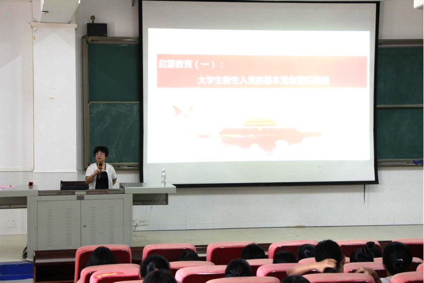 黄嵘书记结合党史、国史,提倡同学们要爱国,要树立正确的世界观、人生观、价值观,并为新生详细介绍我院党组织情况和如何撰写入党申请书,希望同学们树立远大理想,坚持发奋学习,注重锤炼品德,不断开阔视野,勇于进取创新,始终艰苦奋斗,争取成为一名光荣的共产党员!