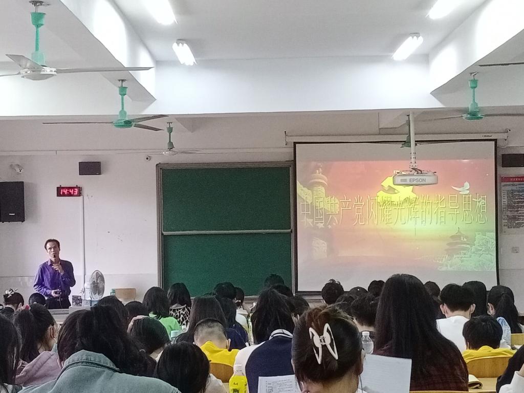 2022年4月16日下午,在12-504教教室,梁庆老师为理学院全体入党积极分子上党课,主题为“中国共产党闪耀光辉的指导思想”。
