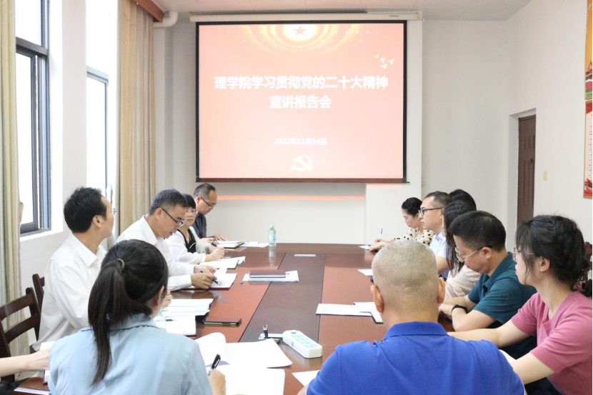 11月14日下午,校党委常委、纪委书记谢立平深入理学院宣讲党的二十大精神。理学院党委委员、党支部书记、党政办主任、学工办主任、组织员、部分教师代表等聆听宣讲。