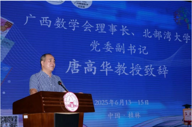 6月13-15日,广西数学会数学教育分会2025年会暨数学教育发展创新论坛在桂林召开,由广西师范大学数学与统计学院数学课栈主办,桂林数学课栈青少年发展服务中心协办,吸引了近400名师生参与。学校党委副书记唐高华教授率理学院教师及学科教学(数学)硕士研究生共17人参加会议,并在大会开幕式上致辞。