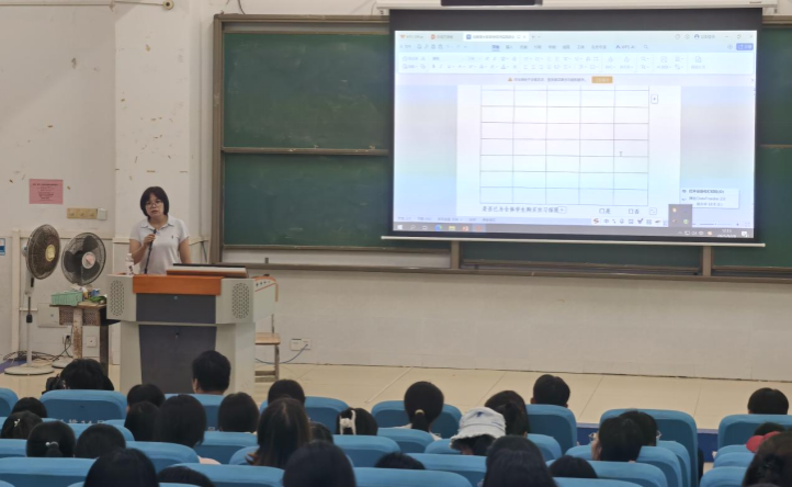 罗韦媛主任与黄永幸副主任结合学科特点开展专项培训。罗韦媛老师围绕实习关键环节展开说明。在时间安排上,她明确实习起止节点、阶段性任务周期,要求学生严格遵循制定的进度表,确保实践与学习有序衔接;同时要求学生遵守实习单位规章制度,展现北部湾大学理学院学子良好风貌。黄永幸老师围绕实习核心要求展开专项讲解。在材料书写上,她明确实习报告、研习报告等材料需涵盖的内容,强调数据真实与逻辑清晰;针对教学设计,她要求学生结合实习学校学生学情,完成教案撰写、模拟授课等任务,注重教学方法的实践与优化;并提醒学生兼顾人身安全与教学安全,遵守实习单位安全管理规定。
