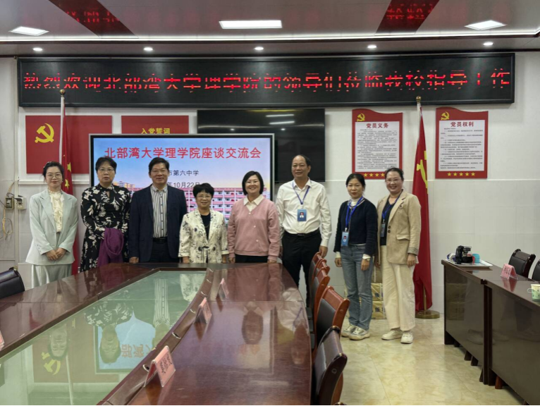 为深化与中学的交流合作、共同助力基础教育高质量发展,2025年10月22日上午,理学院党委书记黄嵘、院长苏华东一行4人赴钦州市第六中学开展交流活动。钦州市第六中学党委书记严丽丽、校长莫怡发等校领导热情接待,并召开教育交流合作座谈会。