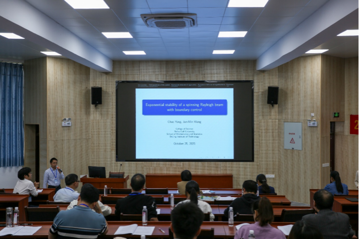 我院杨超博士作了题为《Exponential stability of a spinning Rayleigh beam with boundary control》的学术报告,系统介绍了其在Rayleigh梁系统边界控制与指数稳定性方面的最新研究成果,引发了与会专家的热烈讨论。