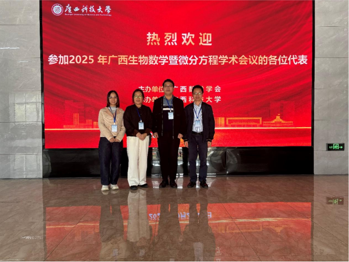 10月24日至26日,由广西数学学会主办、广西科技大学承办的2025年广西生物数学暨微分方程学术会议在柳州顺利举行。来自全区高校师生近100人参加会议。我院黄雪燕副教授等4位教师代表参会。