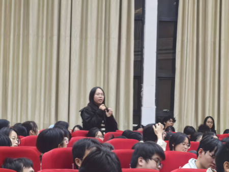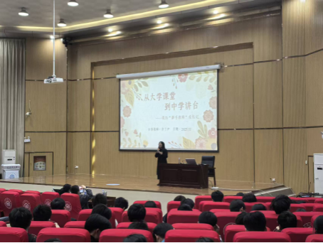 许丁尹老师结合自身成长经历带来主题为《从大学课堂到中学讲台,我的教师成长记》的讲座,她围绕数学教学、班主任工作、成长心得三个板块展开分享。许丁尹老师讲述了自己初登讲台时的“兵荒马乱”,以及如何通过不断学习和实践,逐渐找到适合自己的教学风格。她指出,中学数学教学既要夯实学生的知识基础,更要激发学生的思维活力。在班主任工作板块,她谈到,班级管理的关键在于“读懂学生”——通过日常谈心、关注细节捕捉学生的思想动态,用尊重与包容化解青春期学生的叛逆情绪。最后许丁尹老师坦言正是理学院严谨的治学氛围、老师的悉心指导,为自己的成长奠定了坚实基础。