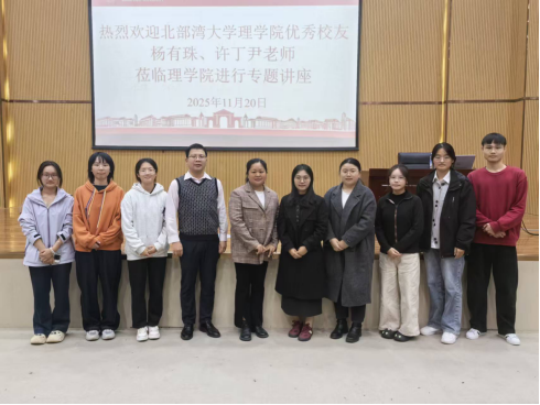 11月20日晚,理学院两位优秀校友——钦州市第六中学杨有珠老师、钦州市第一中学许丁尹老师,应邀回校开展主题分别为“用心管理,‘慧’做班主任”、“从大学课堂到中学讲台,我的教师成长记”的专题讲座。2024级、2025级数学与应用数学专业本科生、学科教学(数学)专业研究生参加。讲座由理学院黄永幸老师主持。