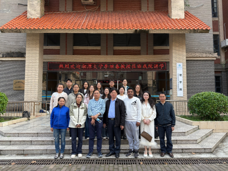 2025年12月22日上午,湘潭大学湖南省 “百人计划” 特聘教授李继春应邀来到理学院,在1C-120室作了题为《Recent progress on mathematical analysis and numerical simulations of graphene》的专题讲座,旨在拓宽我院师生的科学视野,激发科学研究的兴趣和动力。本次活动由学院杨超老师主持,理学院院长苏华东、数学与应用数学教研室主任李智群、理学院部分教师和研究生参加了此次活动。