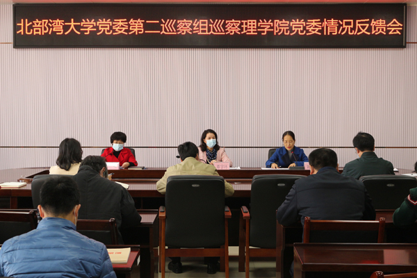 1月15日下午,理学院在1B-319召开北部湾大学党委第二巡察组巡察理学院党委情况反馈会。学校党委常委、纪委书记、校党委巡察工作领导小组常务副组长覃宇环、第二巡察组全体成员、理学院党委领导班子全体成员出席会议,理学院教师代表参加会议。会议由理学院党委书记黄嵘主持。