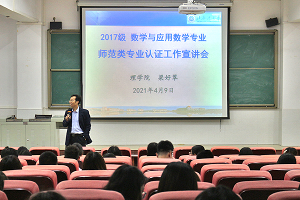4月9日下午,理学院在12-104举行2017级数学与应用数学专业师范类专业认证工作宣讲会。宣讲会由理学院院长梁好翠主讲。2021届数学与应用数学专业(师范教育方向)毕业生参加了讲座。