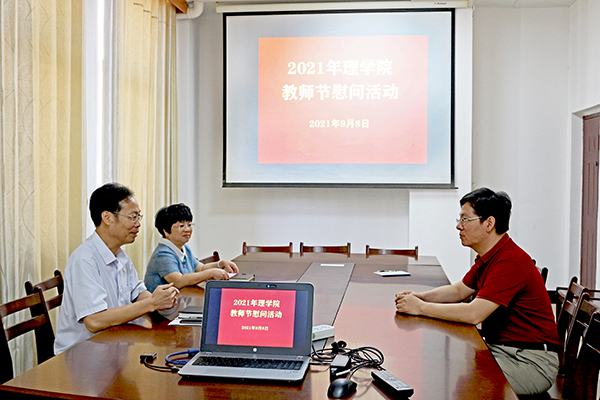 2021年9月8日上午,在第37个教师节来临之际,理学院党委书记黄嵘、院长梁好翠慰问新引进高层次人才苏华东老师,向他致以节日的祝福和亲切的问候。