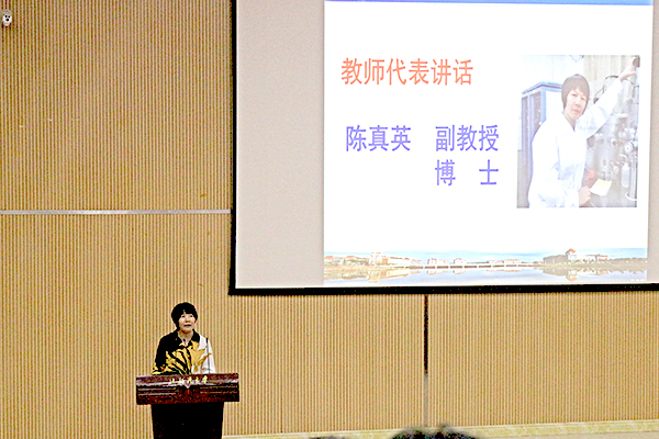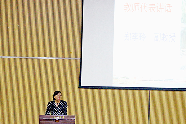 陈真英副教授和郑李玲副教授作为学院教师代表发言。陈真英老师建议同学们好好规划大学四年的每一个阶段,在学好专业知识的同时注重思想品德的培养,养成科学的作息习惯等,并祝愿同学们在大学遇见最好的自己。郑李玲老师希望同学们坚守最初的梦想,坚定自己选择的目标,做“四有”好老师,并就如何应对大学生活中的迷茫分享了自己的看法。
