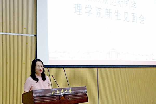 2021年9月13日下午,理学院在3号教学楼101报告厅举行学院全体教职工与2021级全体新生见面会,学院党委副书记容家宁主持会议。