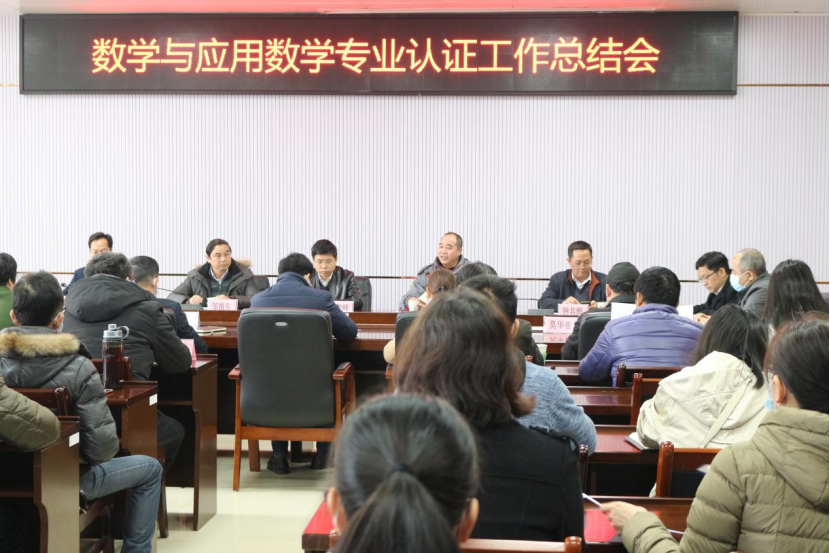2020年12月30日下午,学校在1B-319召开数学与应用数学专业认证工作总结会。学校党委书记韩峻峰、副校长唐高华出席会议,相关职能部门和二级学院负责人以及理学院全体教职工参加会议。会议由唐高华副校长主持。