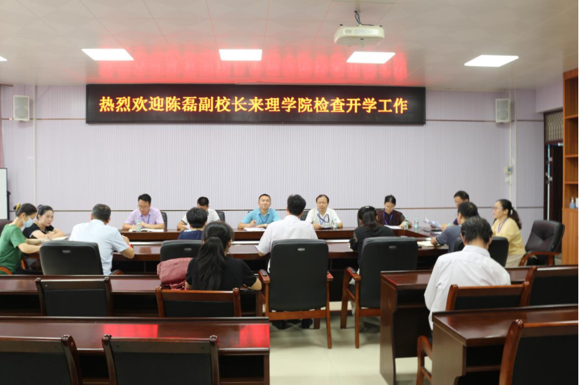 2022年9月19日上午,学校副校长陈磊携人事处、学工处等部门领导到理学院检查指导2022年秋季学期开学工作。理学院领导班子、学工办和教务办等科室人员出席了会议。