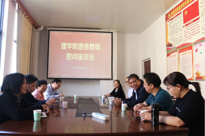 2022年10月31日下午,理学院在1C-338室举行退休教师慰问座谈会。学校离退处副处长封彬贤、工会苏艳梅老师,理学院领导、教师代表和刚退休的檀大耀老师参加了座谈会。座谈会由理学院党委书记黄嵘主持。