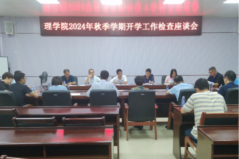2024年9月2日上午,学校副校长梁智携党委统战部、财务处、学工处等部门领导和教学督导到理学院检查指导2024年秋季学期开学工作。检查座谈会在理学院1B-319会议室召开。理学院领导班子、各教研室主任和实验中心主任等参加了座谈会。