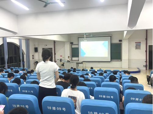 刘莉老师的讲座分为三个部分。一是“教师的职业认识”。她指出一名教师对其职业需要有丰富的内涵认识;要心怀国家和民族教育大业,为培养栋梁而奉献;要注重行为规范和品德修养,为学生树立良好道德标杆;要有扎实的专业知识和良好的人际交往能力,并具备创新精神,推动教学方法与时俱进。二是教师的“教育情怀”。她指出拥有教育情怀的教师,能把学生成长当作最大幸福。在学生管理上,教师需关注学生的发展差异,因材施教,不仅要关心学生的学业成绩,更要留意学生的心理状态和品德培养。三是“互动环节”。刘老师分享的内容非常接地气,同学们听得很认真,深入思考遇到的困惑,并积极主动向老师请教学习。