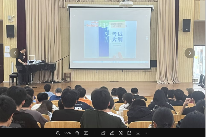 首先,尉老师对近年考研数学的命题趋势、考试大纲及分值分布进行了详细解读,帮助同学们把握整体方向。接着,结合历年真题,名师深入剖析了考研数学的考查重点和难点,强调基础知识的扎实掌握与综合应用能力的提升同样重要。最后,专家为同学们制定了科学的复习规划,建议分阶段(基础阶段、强化阶段、真题阶段)、有针对性地进行备考。在互动环节,同学们踊跃提问,就复习策略、时间管理等问题与名师进行了深入交流。