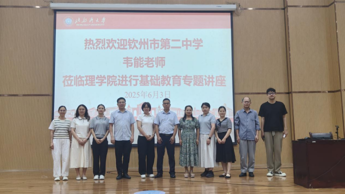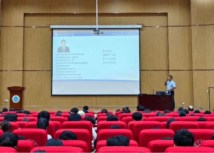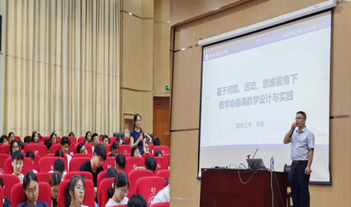 6月3日,钦州市第二中学韦能老师应邀请到理学院作题为“基于问题、活动、思维视角下数学命题课教学设计与实践”的专题讲座。2022级和2023级数学与应用数学专业本科生、学科教学(数学)研究生、部分数学教师参加活动。讲座由理学院黄立壮老师主持。