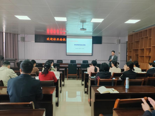 2025年11月28日上午,理学院邀请厦门大学林亚南教授在学院1B-319会议室作题为“讲授课程与建设课程”的教学专题讲座。讲座由院长苏华东教授主持,理学院教师代表参加。
