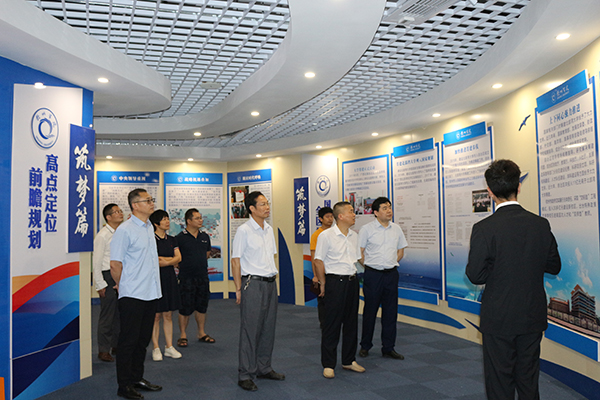 2021年5月24日下午,桂林理工大学理学院院长肖剑荣、副院长李明等一行四人到我院调研交流。院长梁好翠、副院长谢文彬和部分专业教师陪同肖剑荣院长一行参观了学校办学成果展、海洋文化馆和理学院实验中心并进行了座谈交流。