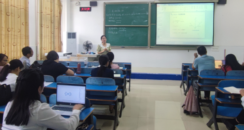 接着,由梁宇、曾梦、曹秀和段强四位老师进行教学汇报,包括20分钟授课和10分钟提问交流。四位老师备课充分,讲课思路清晰,也注重思政元素的融入。提问交流过程中年轻教师们能认真听取其他教师的建议,虚心好学。