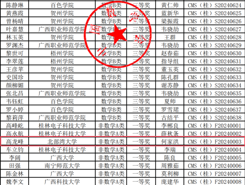 近日,第16届全国大学生数学竞赛初赛落下帷幕,我校有365名学生成功参赛,其中数学专业组获一等奖16人、二等奖18人、三等奖15人;非数学组获一等奖42人、二等奖60人、三等奖40人,获奖人数共191人,获奖率达到52.3%。我校高龙峰同学脱颖而出,在非数学A类组中以广西第三名的优秀成绩进入了全国决赛。