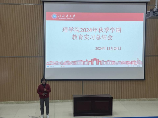 2024年12月24日晚,理学院 2024 年秋季学期教育实习总结会在3- 101 报告厅召开。此次总结会聚焦于 2021 级数学专业和物理专业学生的实习成果,旨在全面梳理经验,为未来的教育实践指明方向。我院副院长郑李玲、张爽,毕业班班主任张坚、罗韦媛及2021级全体学生参加总结会。大会由数学与应用数学教研室副主任黄立壮老师主持。