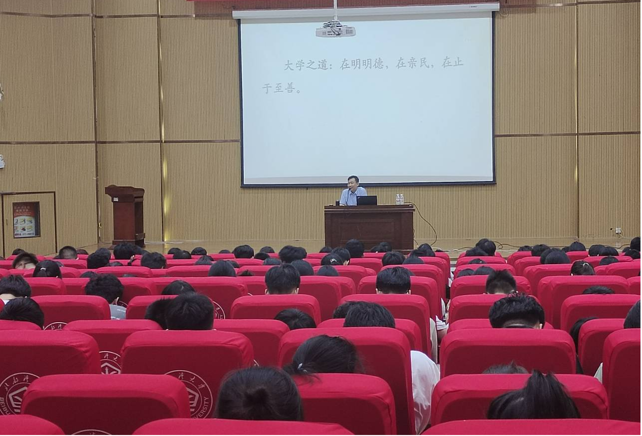 在秋风送爽、金桂飘香的美好时节,我们理学院又迎来一批满怀梦想与激情的新面孔。为了让新生能够尽快适应大学生活,树立牢固的安全意识,9月13日下午,我院在4号教学楼101报告厅举办2024级新生融入湾大第一课教育,由党委副书记劳靖主讲,理学院2024级全体新生参加。