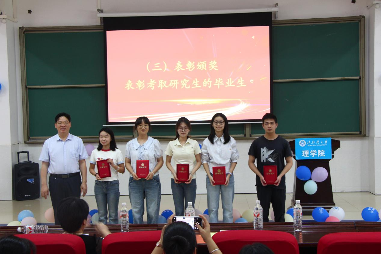 为了给理学院2025届毕业生们送上最真挚的祝福,为同学们的大学生活画上圆满句号。我院于2025年6月24日在12-104举办北部湾大学理学院2025届毕业生欢送会暨优秀毕业生表彰大会。