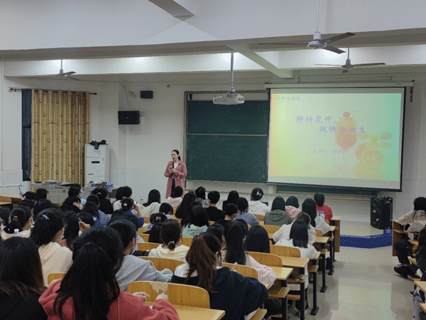 为促进本院女生身心健康发展、人格健全,培养女生自尊自爱、自立自强的精神品质,4月17日和4月23日分别举办了主题为“静待花开,做快乐女生”为主题的女生讲座。讲座由我院团委书记、学工办主任陆燕玲老师主讲,我院2020、2021级全体女生参加此次讲座。