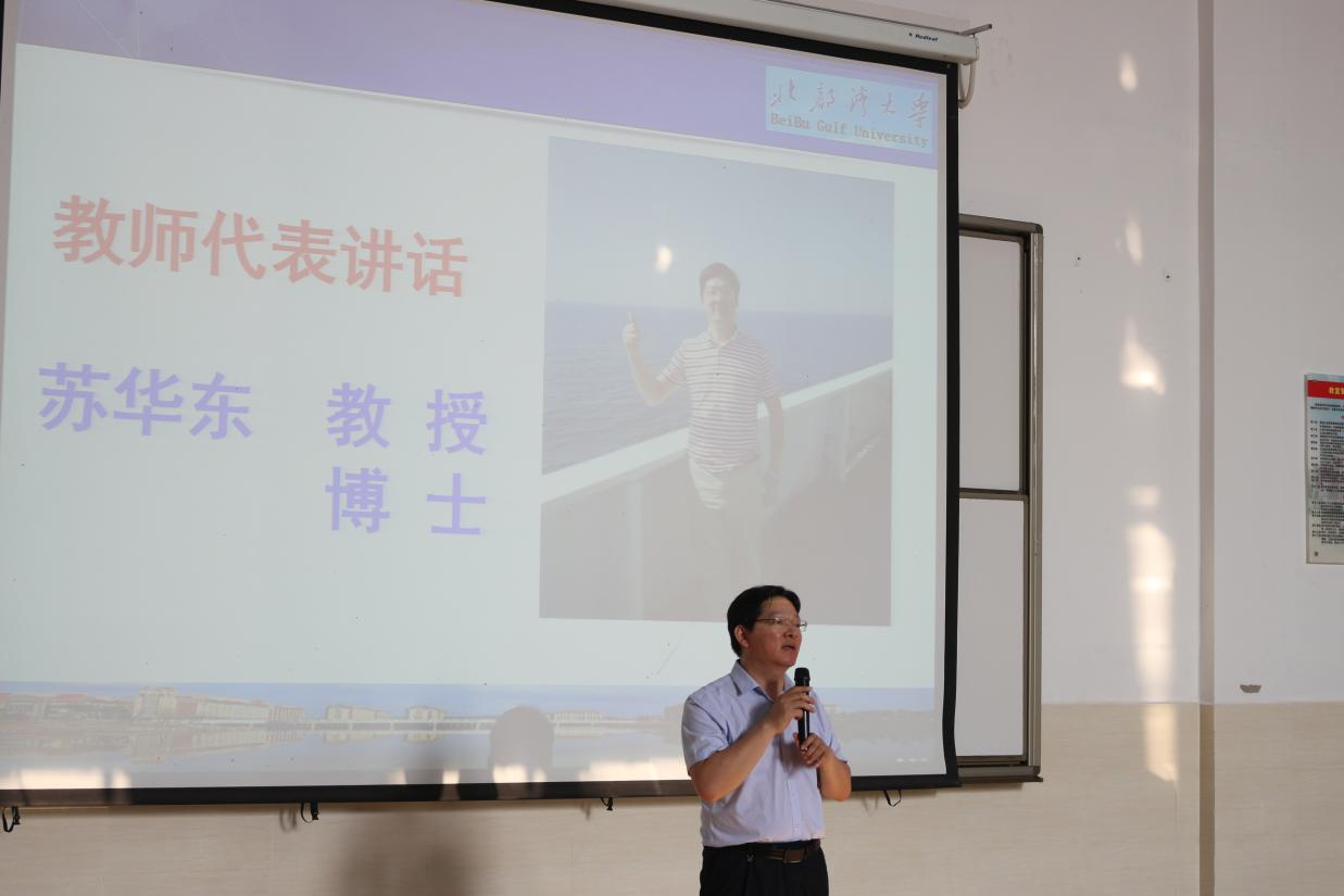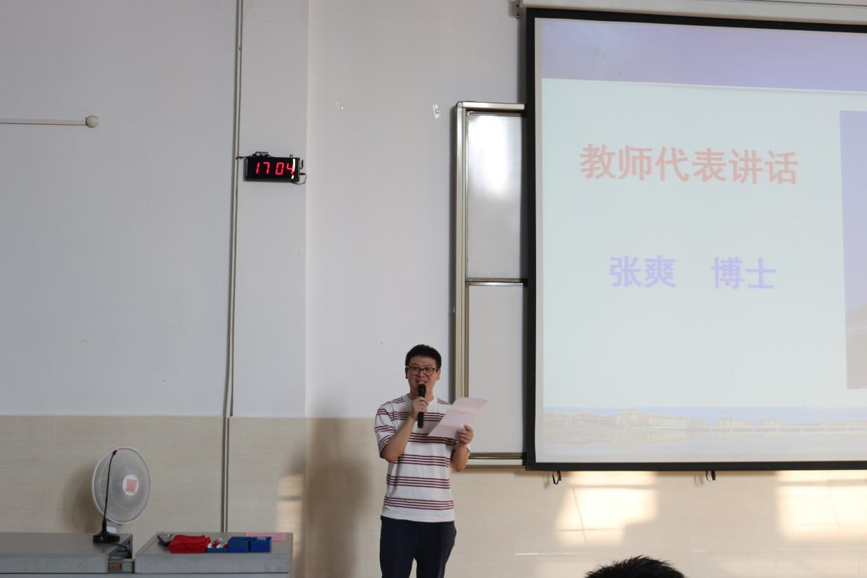苏华东教授和张爽博士作为学院教师代表发言。苏华东教授建议新生们进入大学要活出自信、承担责任、学会感恩,希望大家时时刻刻保持一颗感恩的心,勇担责任,活得精彩。张爽博士从大学生课程学习规划、职业发展规划等方面提出了建议,希望同学们要努力向上、奋力前行、勇担责任,能够拥有一个有意义的、丰富多彩的大学生活。