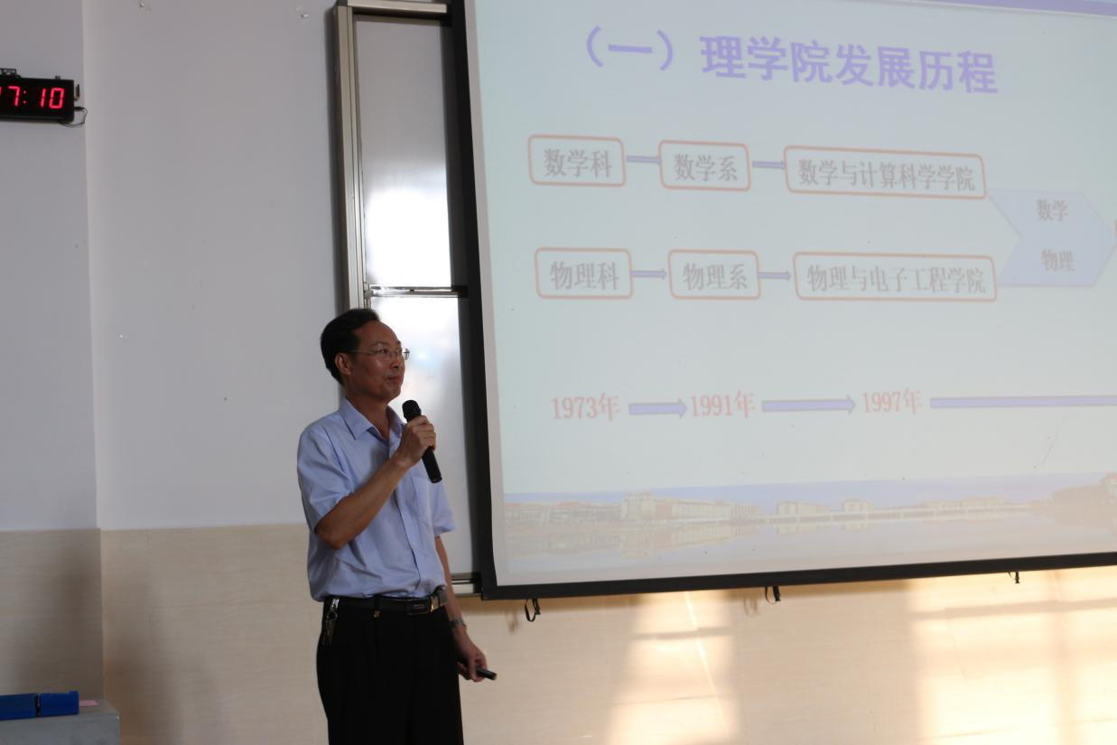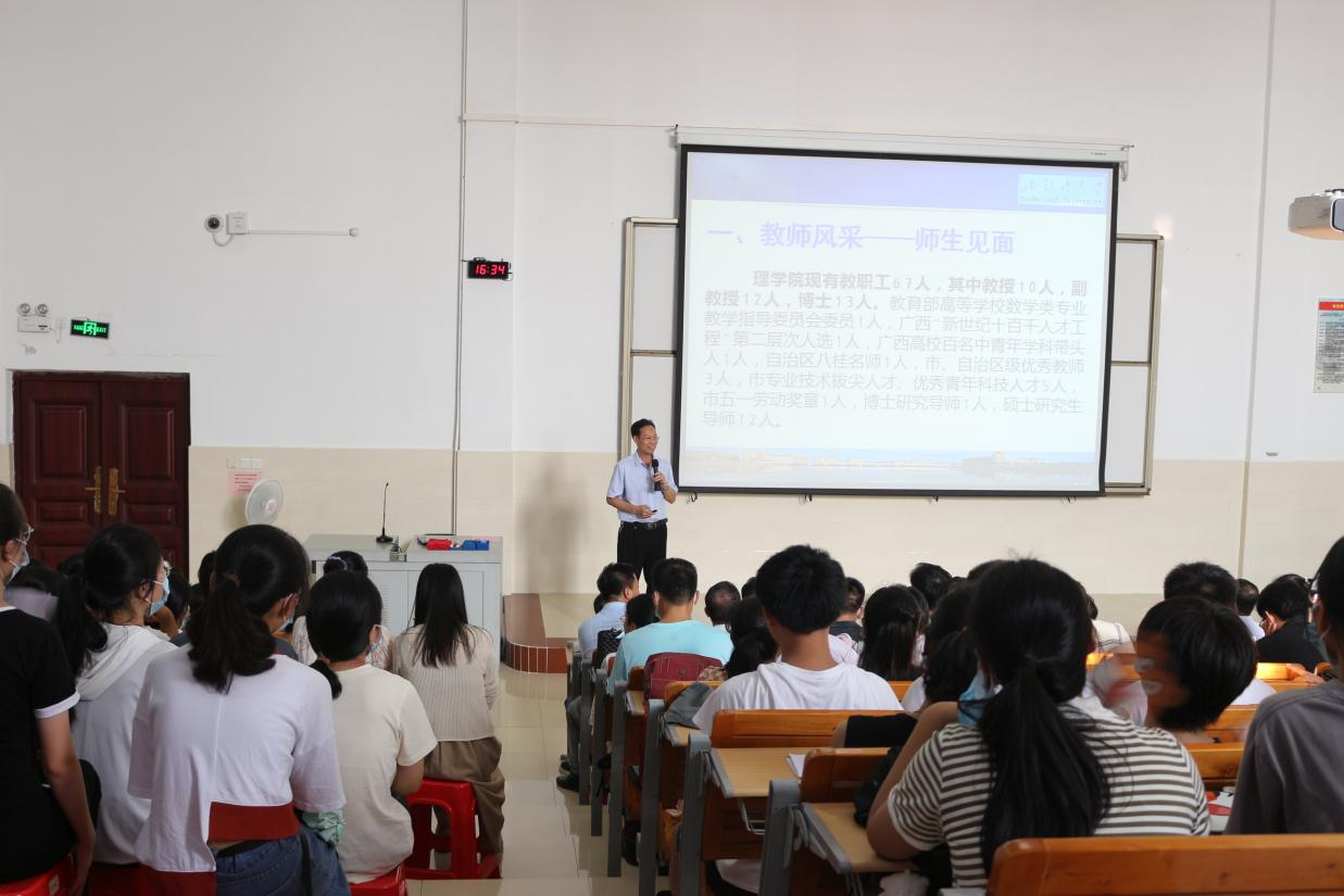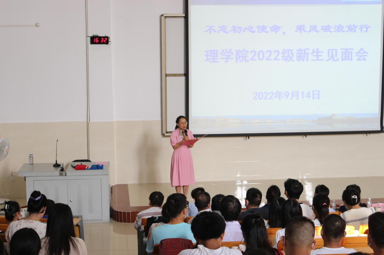 2022年9月14日下午,理学院在13号教学楼208报告厅举行全体教职工与2022级全体新生见面会,学院党委副书记容家宁主持会议。