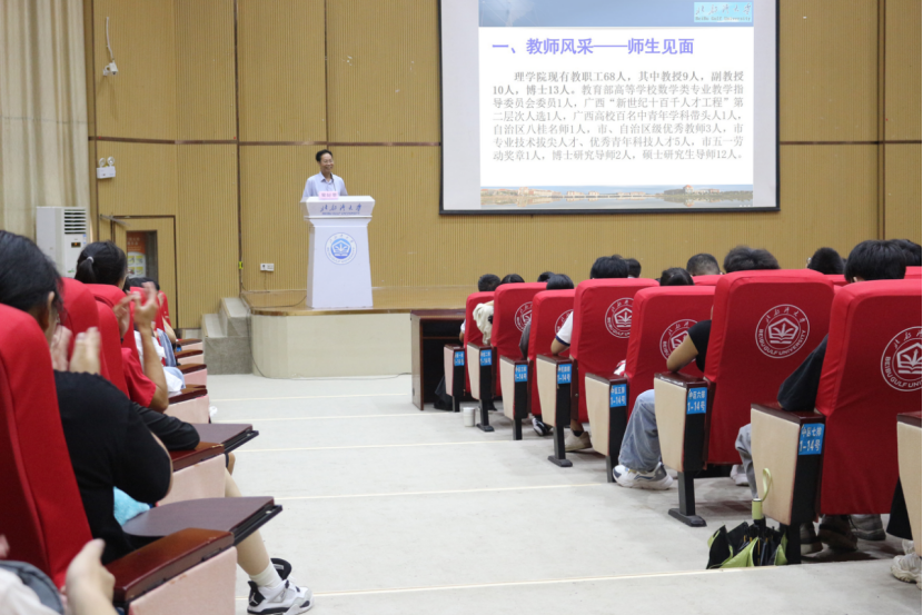 2023年9月11日下午,理学院在4号教学楼101报告厅举行全体教职工与2023级全体新生见面会。辅导员庞悦主持见面会。
