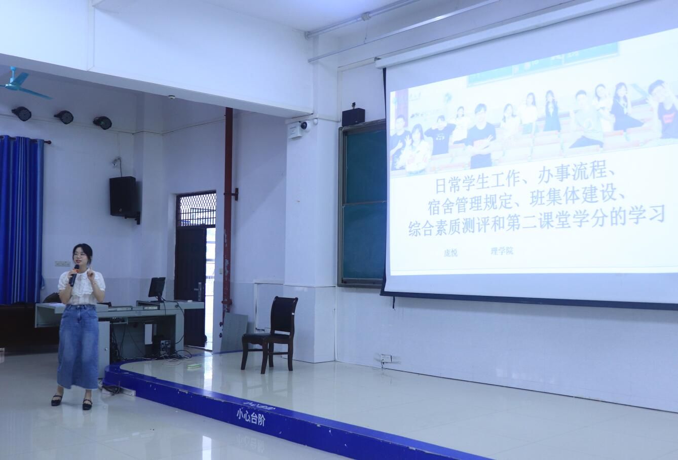 为教育引导新生尽快适应大学学习和生活,树立自身发展目标和努力方向,9月12日下午,我院在12号教学楼104报告厅开展了日常学生工作、宿舍管理规定和综合素质测评学习讲座。此次讲座由我院庞悦老师主讲。