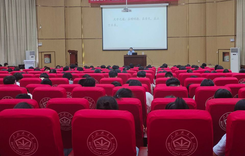 为增强新生安全防范意识,提高新生防盗防骗能力,引导新生尽快适应大学学习和生活,树立自身发展目标和努力方向,9月13日下午,我院在4号教学楼101报告厅开展新生入学安全教育第一课。此次讲座由我院党委副书记劳靖主讲,2024级全体学生及辅导员参加。