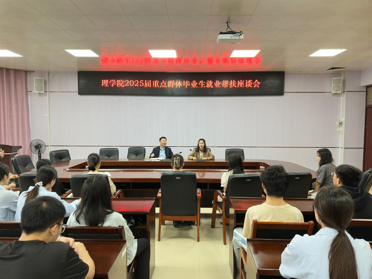 为做好理学院2025届重点群体毕业生就业工作,帮助重点群体毕业生顺利就业,2025年3月14日上午,理学院在1B-319会议室召开了2025届重点群体毕业生就业帮扶座谈会。此次会议由理学院党委副书记劳靖主持,就业专干王宇清老师以及我院2025届重点群体毕业生参加会议。