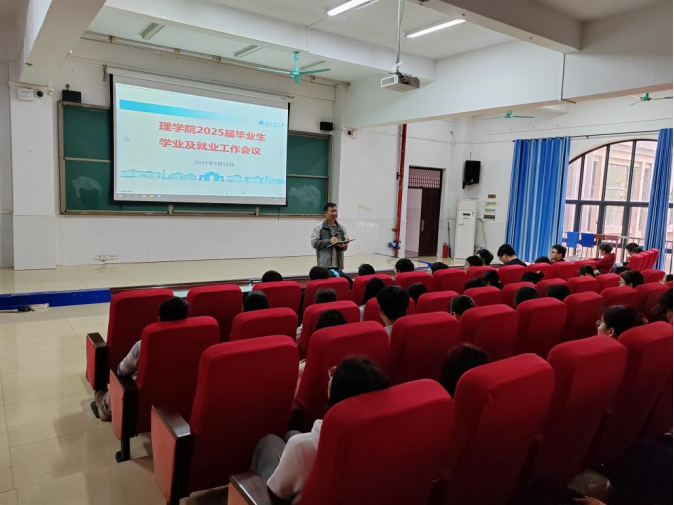 为统筹推进2025届毕业生学业规划与就业指导工作,助力学生顺利完成学业并实现高质量就业。2025年3月13日下午,理学院在12-104开展2025届毕业生学业及就业工作会议。学院院长苏华东,副院长郑李玲、张爽,副书记劳靖,各教研室主任,班主任及2021级全体学生参加会议。本次会议由郑李玲副院长主持。