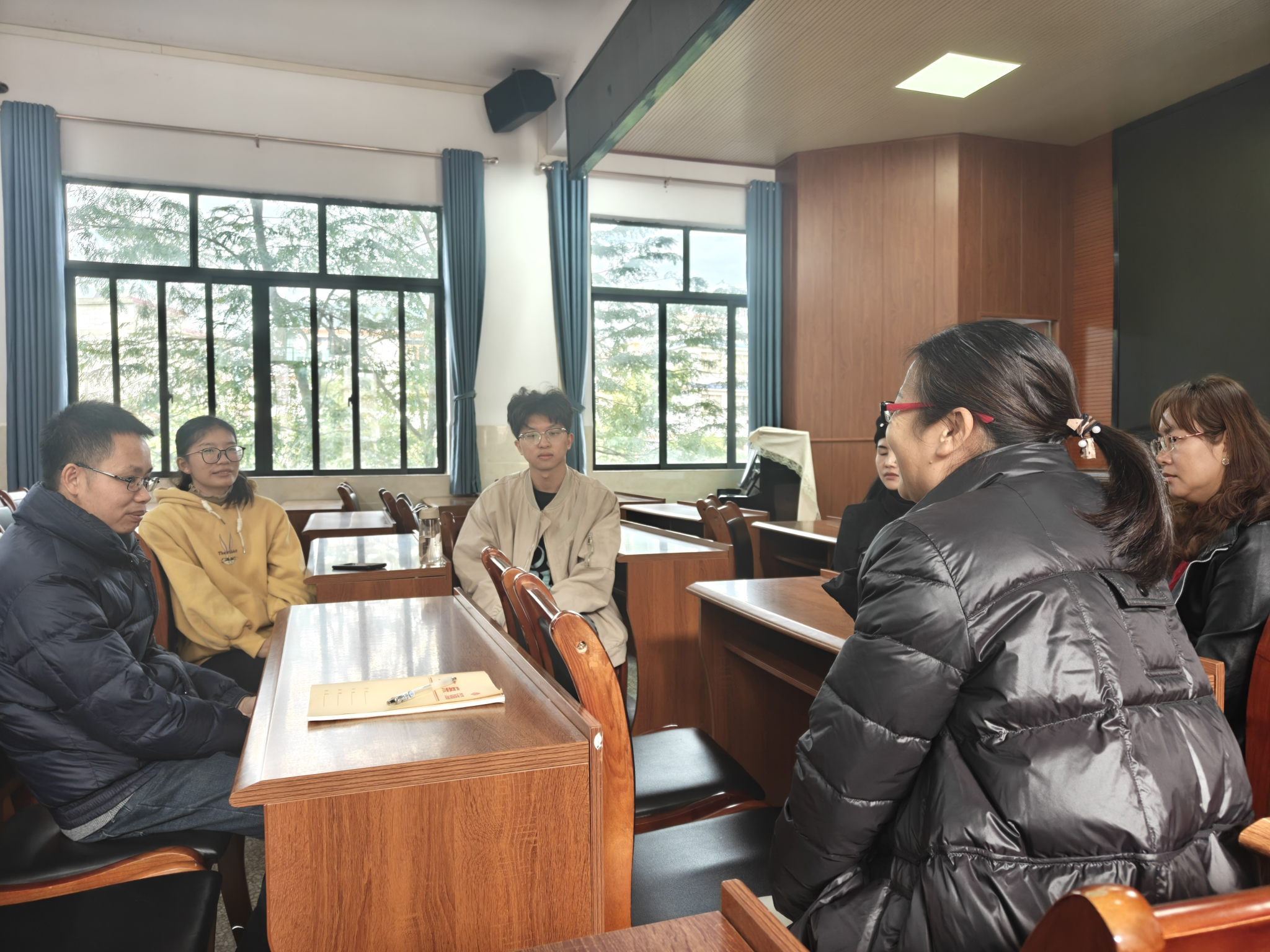 随后调研组前往蒙山县湄江中学,围绕新课改下的教师能力要求展开交流。校方提出,希望高校强化学生“信息化教学工具应用”“跨学段知识衔接”等能力;辅导员陈海涛表示,学院将结合此次反馈,在后续教学中增设相关实训模块,并推动两校建立“毕业生求职信息直通”机制,助力岗位精准匹配。