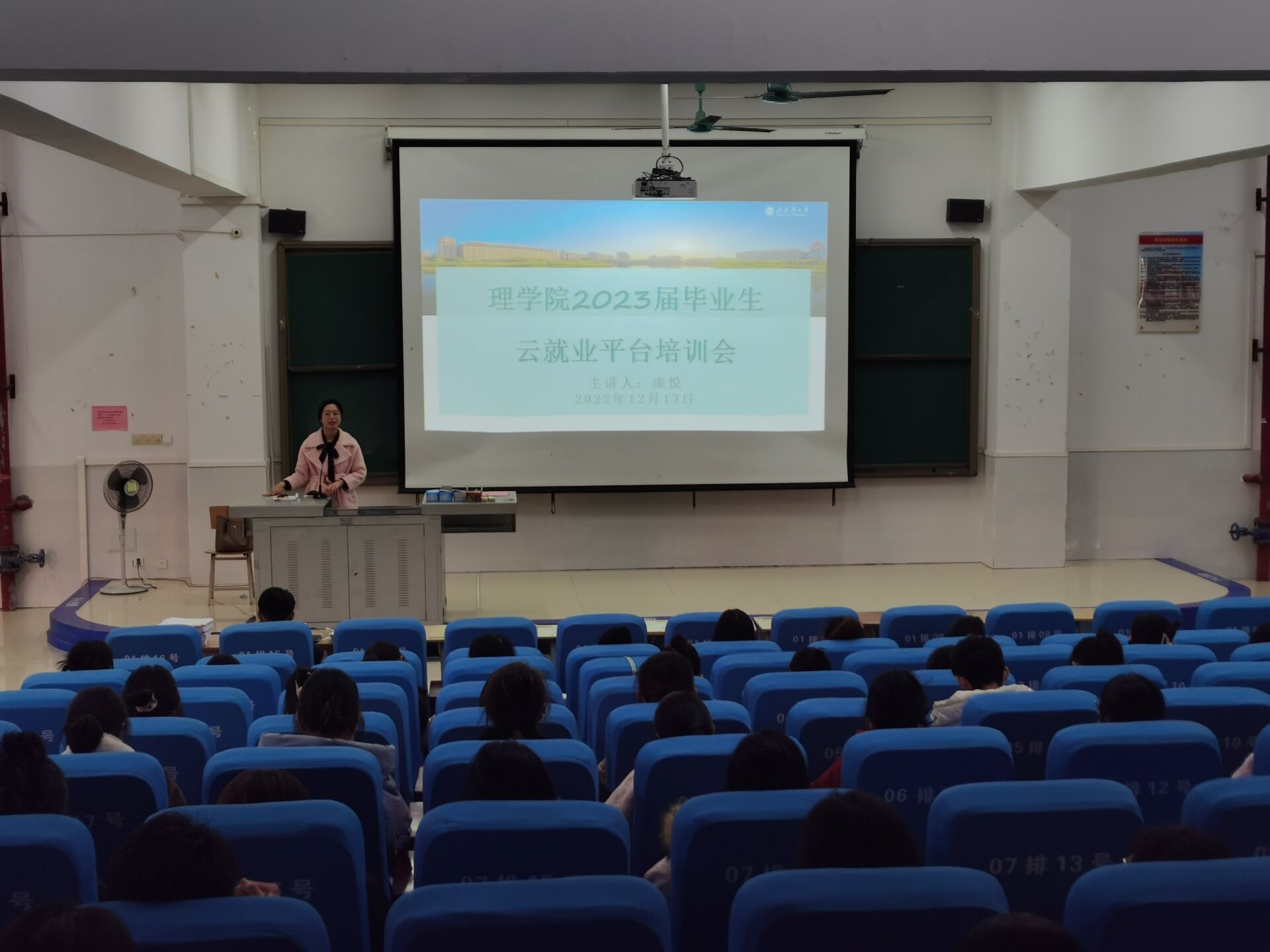 2022年12月13日下午,在11-112教室召开了理学院2023届毕业生云就业平台培训会(数学与应用数学专业毕业生专场),会议由庞悦老师主讲,数应本191、192、193班全体毕业生参加。