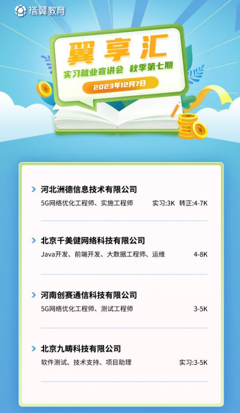 宣讲会上,用人单位通过线上宣讲的方式,详细介绍了公司情况、岗位职责和应聘要求,让毕业生了解了用人单位的招聘需求,加强了毕业生与企业的交流。本次宣讲会参与招聘的用人单位有河北洲德信息技术有限公司、北京千美健网络科技有限公司、河南创赛通信科技有限公司、北京九畴科技有限公司等四家公司,面向我校毕业生招聘近30名学生,主要涉及5G网络优化工程师、实施工程师、Java开发工程师等岗位。