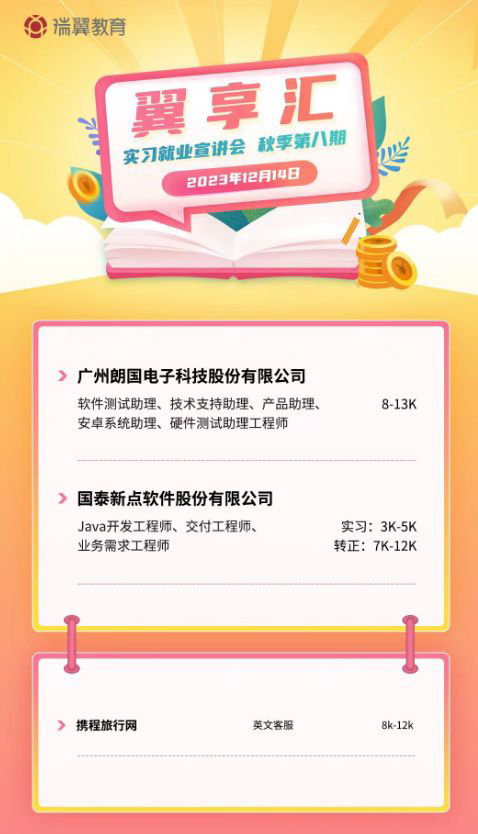 宣讲会分十一期举行,用人单位通过线上宣讲的方式,详细介绍了公司情况、岗位职责和应聘要求,让毕业生了解了用人单位的招聘需求,加强了毕业生与企业的交流。第八期宣讲会参与招聘的用人单位有广州朗国电子科技股份有限公司、国泰新点软件股份有限公司等两家公司,面向我校毕业生招聘近30名学生,主要涉及软件测试助理、技术支持助理、产品助理、Java开发工程师等岗位。