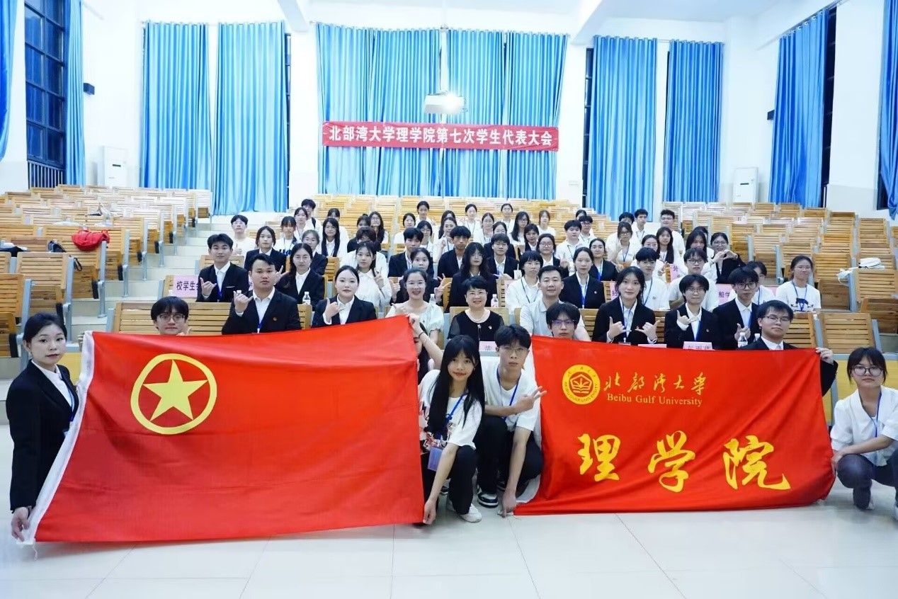 2025年5月17日19:00,北部湾大学理学院第七次学生代表大会在14-208报告厅顺利召开。出席本次大会的领导老师有北部湾大学理学院党委书记黄嵘、副书记劳靖、理学院辅导员王宇清,以及北部湾大学校学生会代表、各二级学院学生代表和理学院各班代表。