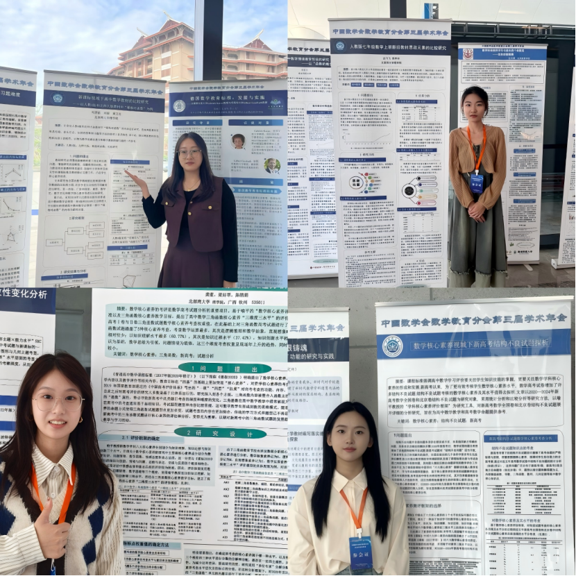 我院有3名研究生在分论坛上作报告:李梦蝶作题为《初二学生数学抽象思维的培养探究》的报告、邵汇钧作题为《基于问题提出的一次函数教学探索》的报告、吴春艳作题为《人教新版初一数学章首页的教学设计》的报告。此外,教育硕士龚蓝、刘碧函、边飞飞、陈思思的论文以海报形式展览。理学院师生在此次学术会议中,与数学教育领域专家面对面进行了深入的交流,扩大了学术视野。